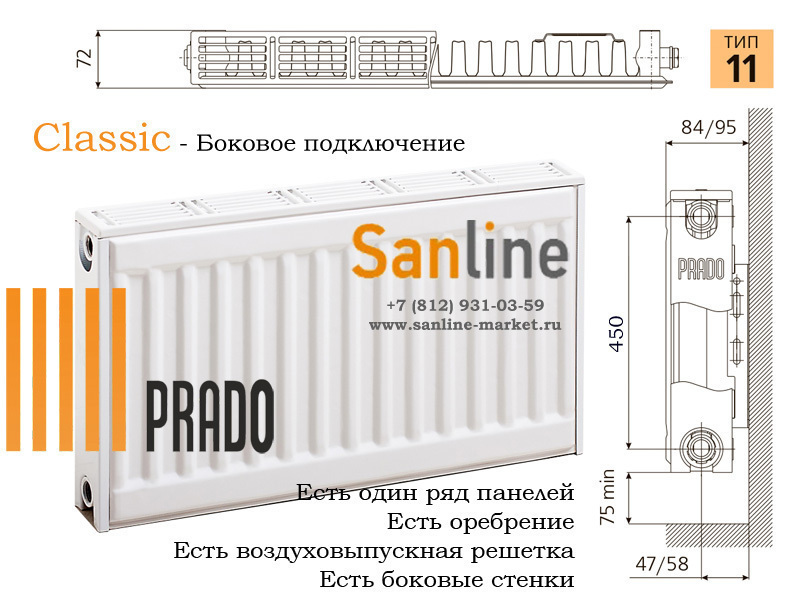 Радиаторы PRADO Тип-10 серии Classic и Universal тоже являются гигиеническими радиаторами, потому, что не имеют конвективной воздуховыпускной решетки и внутреннего оребрения и боковых стенок.